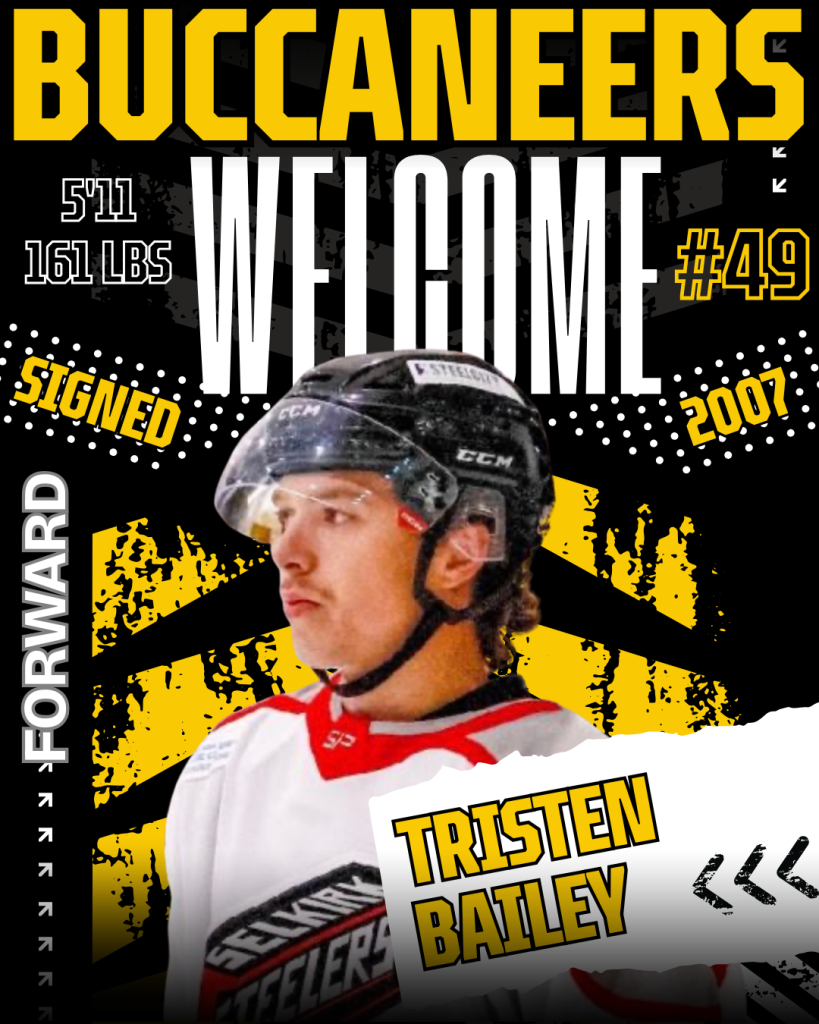 General Manager Bill Bestwick confirmed that Bailey joins the Bucs from the Selkirk Steelers of the MJHL.